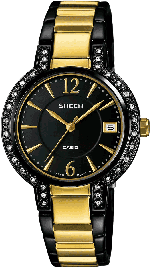 The two tone Casio SHEEN SHE-4805BSG analog watch proves that black and gold is a...
