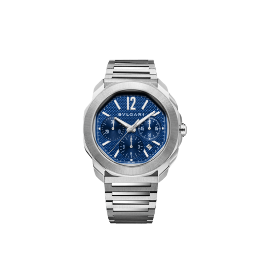 With its appealing round-but-not-round octagonal case, the Octo Roma Chronograph watch in stainless steel with...
