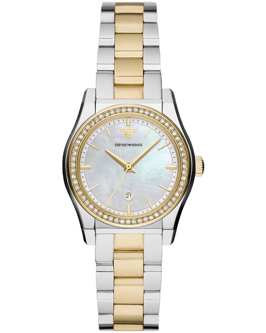 Extremely sleek and elegant, this women's analog watch by Emporio Armani is perfect for adding...