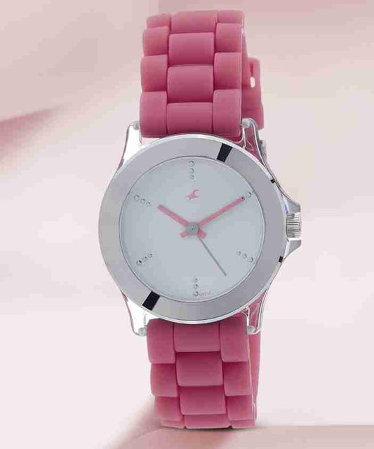 Fastrack Silver Dial Pink Leather Strap Watch-6041SL03