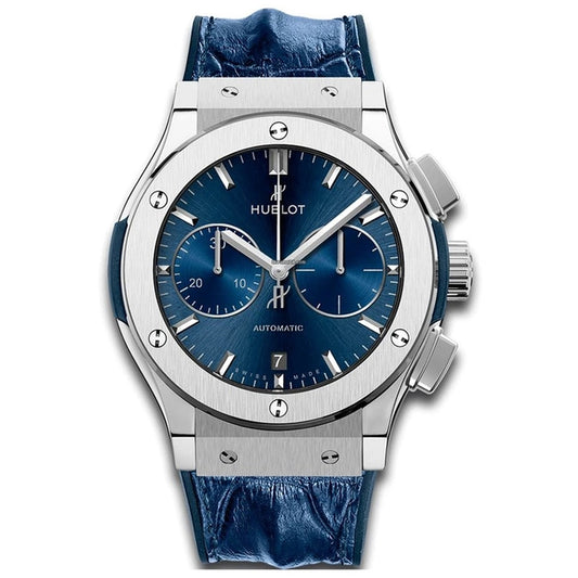The Hublot Classic Fusion Chronograph Titanium Blue 521.NX.7170.LR has an automatic movement with 42 hours...