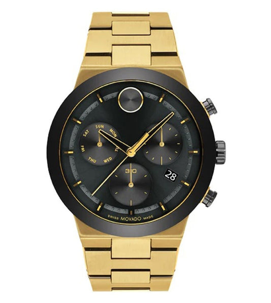 Movado BOLD Fusion, 44mm pale yellow gold ion-plated stainless steel case and bracelet...