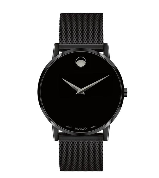 Movado Museum Classic, 40 mm black PVD-finished stainless steel case and mesh bracelet with a...