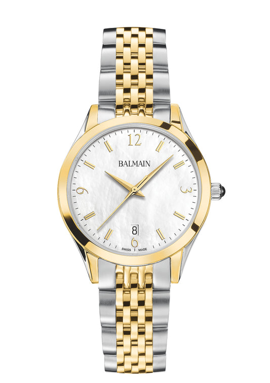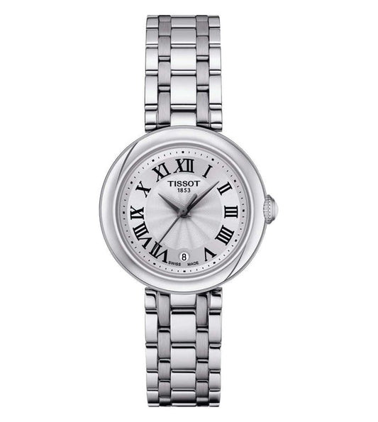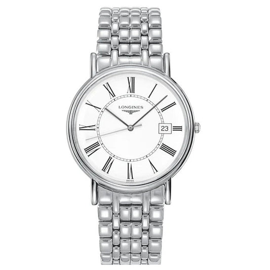 Stainless steel case with a stainless steel bracelet. Fixed stainless steel bezel. White dial with...