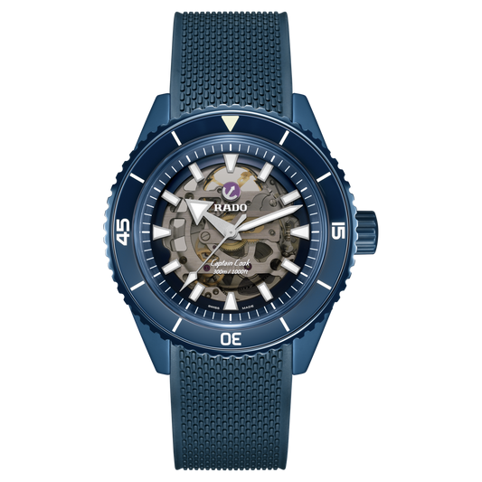 The Captain Cook High-Tech Ceramic Skeleton showcases its innovative R808 movement, a marvel of contrasts,...