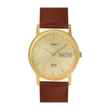 Timex Classics Men's Quartz Analog Champagne Dial Round Case Day Date Function Watch -A501