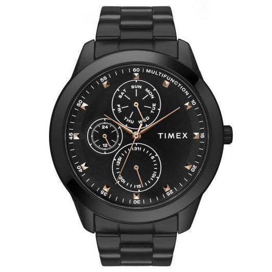 TIMEX FASHION MEN'S BLACK DIAL ROUND CASE MULTIFUNCTION FUNCTION WATCH -TWEG18502