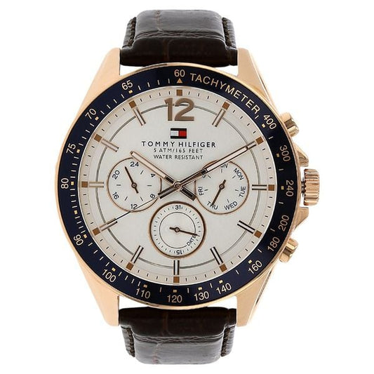 Tommy Hilfiger Quartz Chronograph White Dial Leather Strap Watch for Men