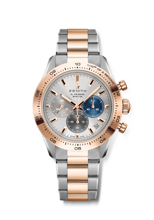The CHRONOMASTER Sport in steel and rose gold combines elements of past ZENITH chronograph references...