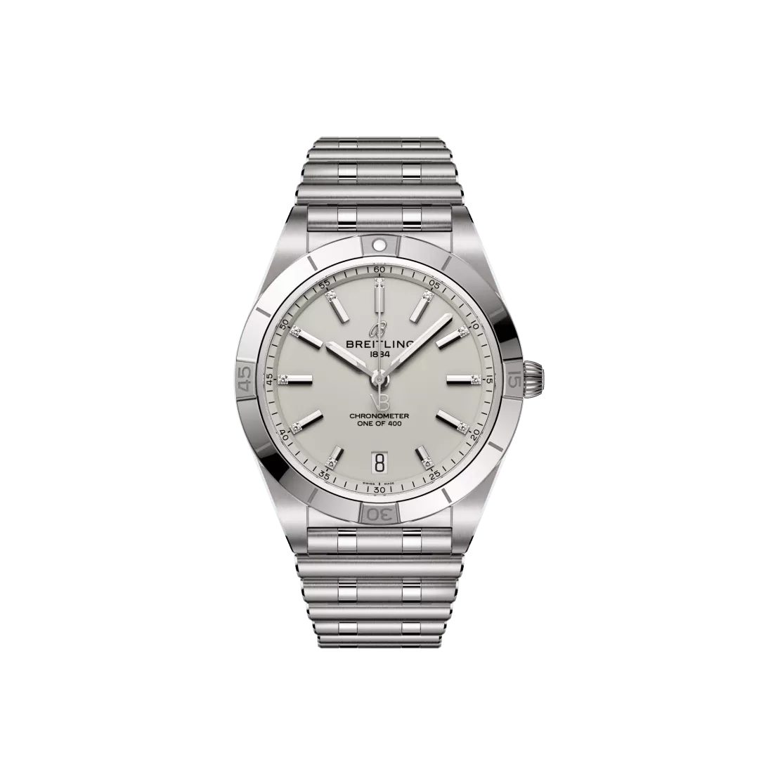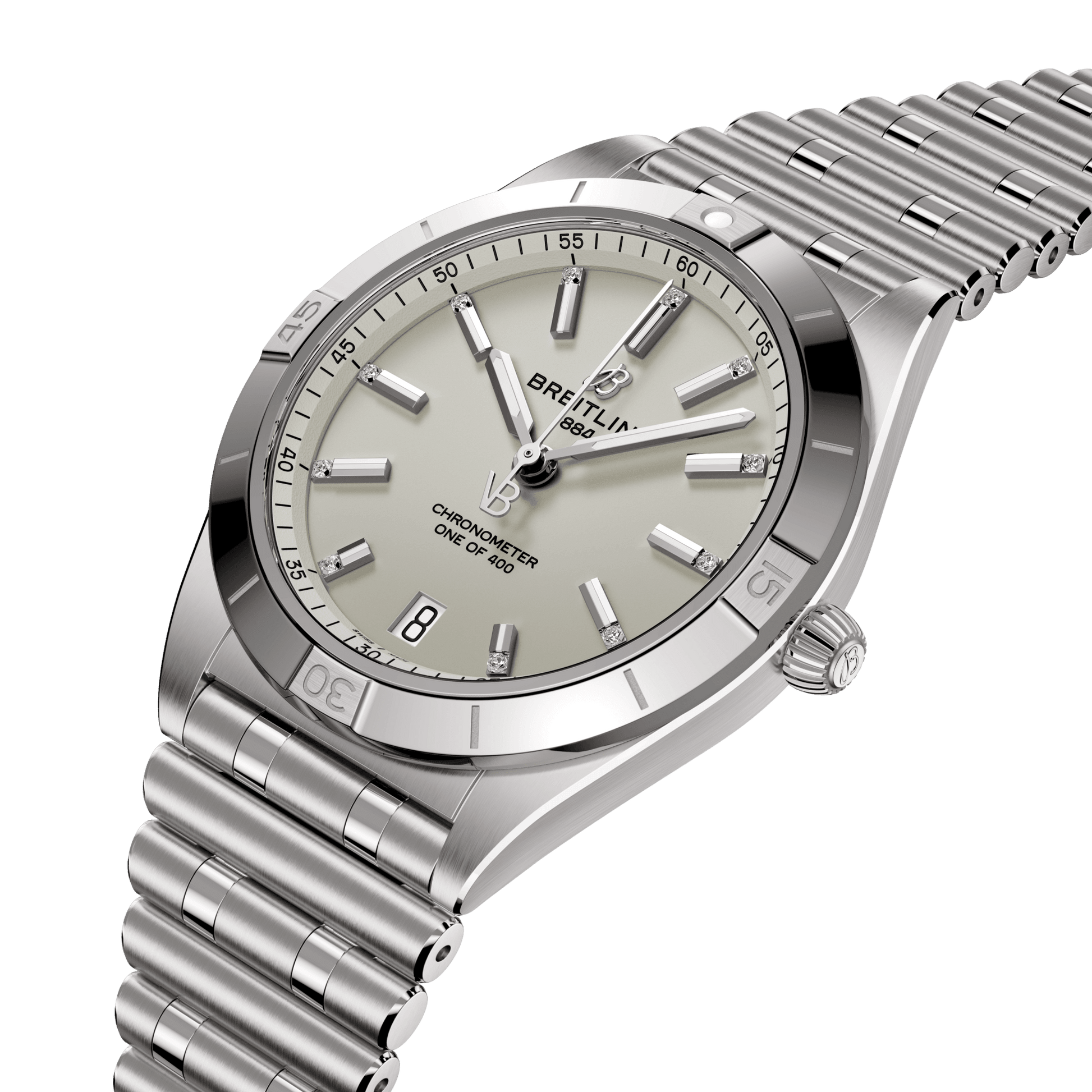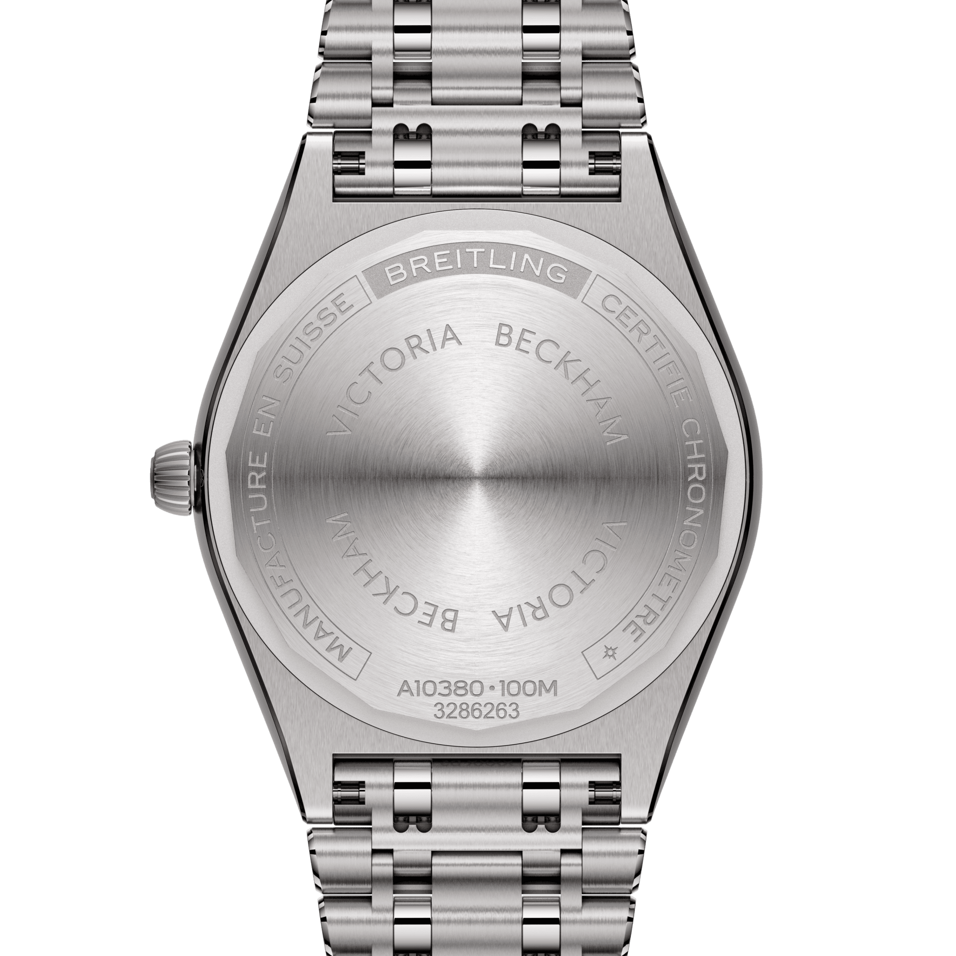Breitling’s versatile Chronomat in a limited-edition collaboration with Victoria Beckham. Limited to only 1,500 pieces, the Chronomat Automatic 36 Victoria Beckham combines our timeless craftsmanship with the fashion-house creative director’s sophisticated yet playful blend of feminine and masculine influences. It features colorways inspired by Victoria Beckham’s Spring/Summer 2024 palette—peppermint, midnight blue, dove gray, and sand—while preserving classic Chronomat design elements such as the metal rouleaux bracelet and raised rider tabs at the 15-minute marks. The limitation, “One of 400” for stainless-steel or “One of 100” for gold, is displayed on each dial, and gold pieces come with a co-branded travel pouch. The Chronomat Automatic 36 Victoria Beckham is a collection for women who embrace authenticity and unapologetic confidence—traits that never go out of style.