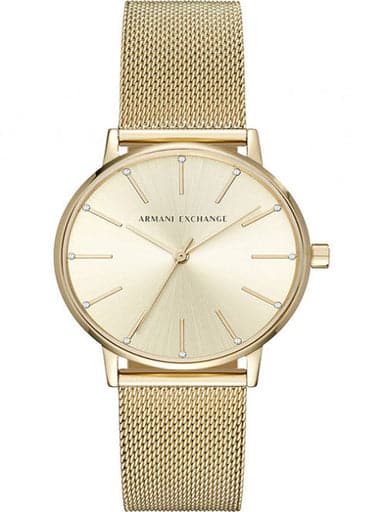 Armani Exchange AX5536 is an amazing and trendy Ladies watch. Case material is PVD Gold plated, which stands for a high quality of the item and the Gold dial gives the watch that unique look. 50 metres water resistancy will protect the watch and allows it to be submerged in water for periods