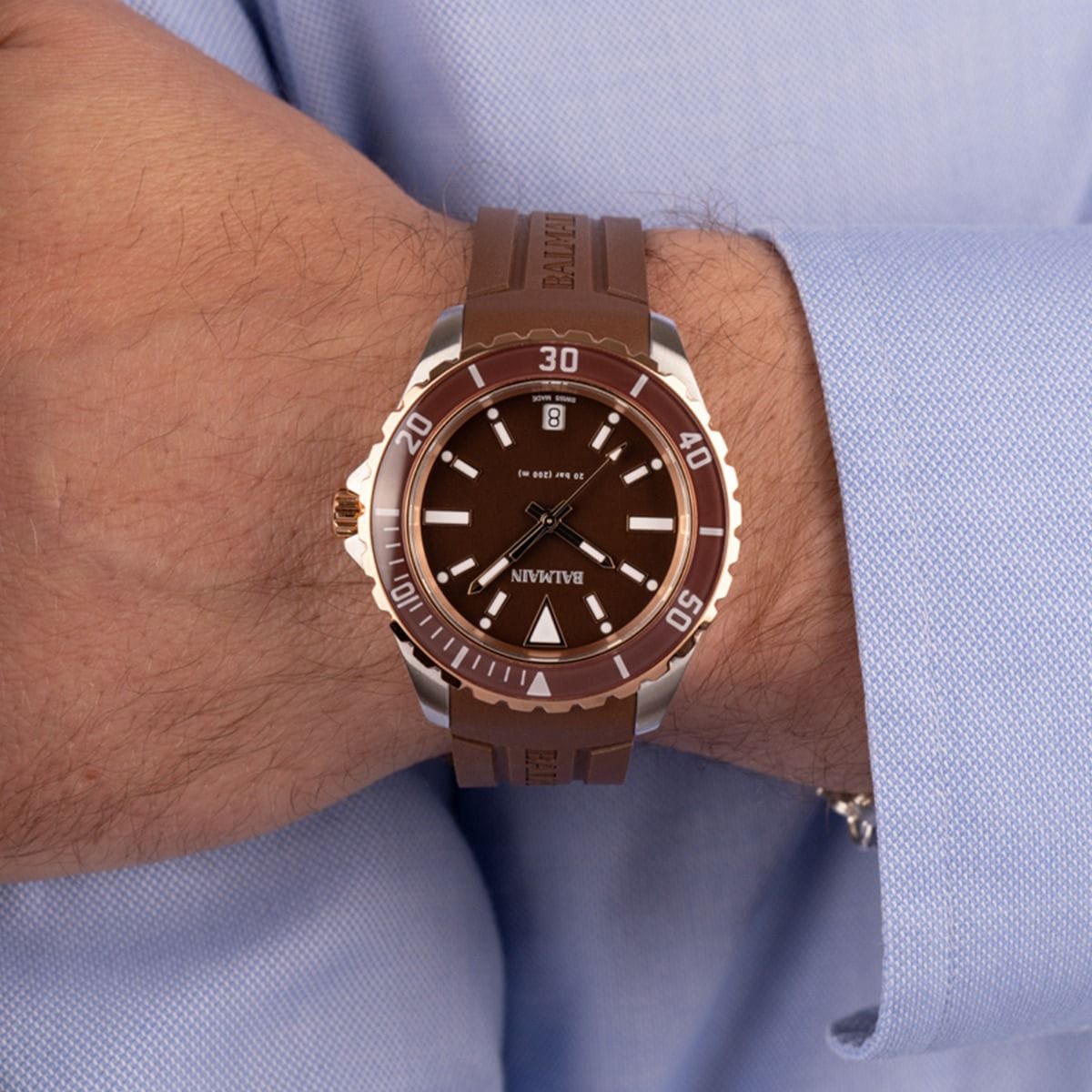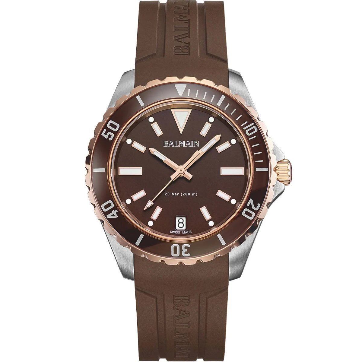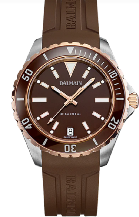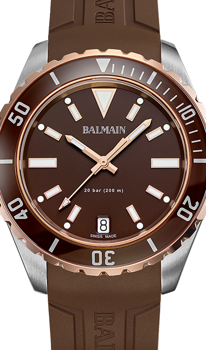 Balmain's Ophrys collection blends bold design with technical innovation, drawing inspiration from dive watches. Featuring sporty styles, each piece showcases striped dials, a screw-down crown, a rotating bezel, and is water-resistant up to 200 meters (20 bars). These elements pay homage to traditional seafaring timepieces while adding a modern twist.