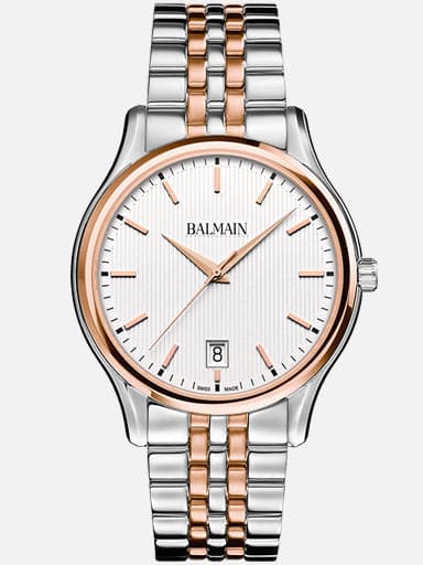Gender Man Case Bicolor, stainless steel 316 L and rose gold PVD coating Case shape Round Weight 114 gr Diameter (mm) 40.00 Thickness (mm) 7.60 Crystal Sapphire crystal Water resistance 5 bar Movement Quartz Caliber ETA F07.115 Dial Silver Strap Stainless steel Outside Bicolor, stainless steel and pink PVD coating Clasp Butterfly clasp with push-buttons Warranty Swiss made 2 years Information