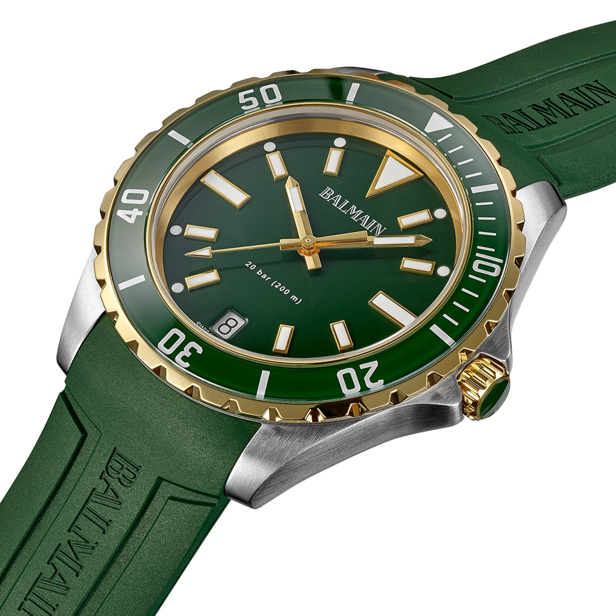 Balmain's Ophrys collection blends bold design with technical innovation, drawing inspiration from dive watches. Featuring sporty styles, each piece showcases striped dials, a screw-down crown, a rotating bezel, and is water-resistant. These elements pay homage to traditional seafaring timepieces while adding a modern twist.
