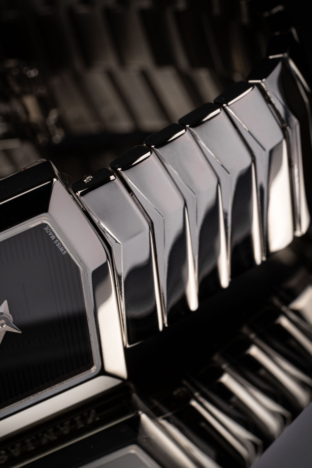The Balmain Taffetas Quartz Womens Watch B46513368 22.5 mm exudes refined elegance with its rose gold-tone stainless steel case and bracelet. Featuring a sleek rectangular dial with minimalist detailing, it blends sophistication and Swiss precision. Powered by reliable quartz movement, this exquisite timepiece is perfect for women who value timeless beauty and effortless grace.