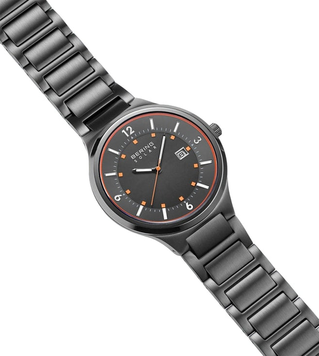 The Bering Slim Solar collection beats with the rhythm of nature. Because its energy source is environmentally friendly and infinitely available, light, not only sunlight but any kind of light is converted into electrical energy by the solar cell under the face and stored in a rechargeable secondary battery. No battery change is required as in this quartz watch.