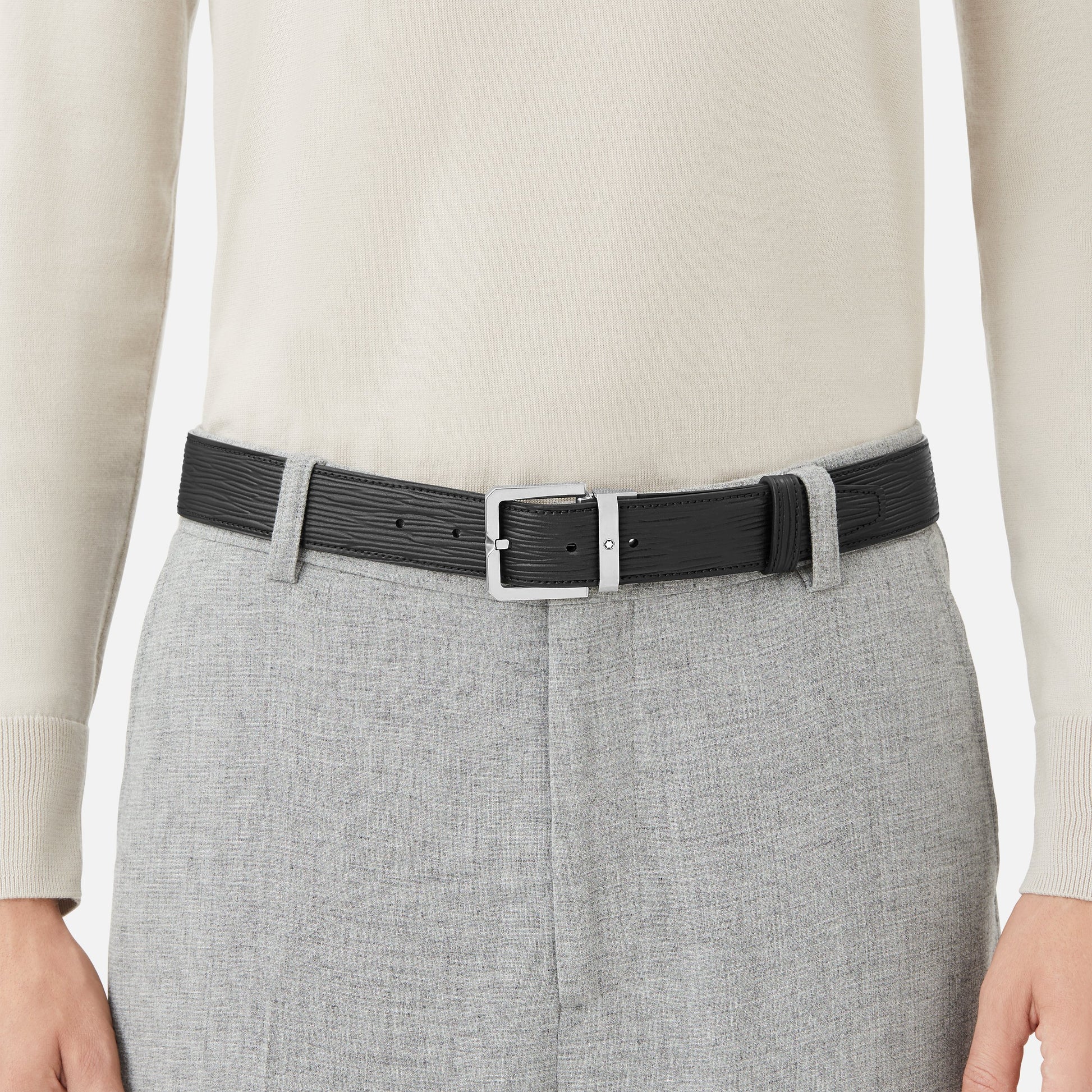 Textured in high-quality leather, this 35mm black belt features a tree-bark motif print throughout its length. The square-shaped buckle offers a timeless touch to this bold piece, which is detailed with contrasting gray lining.