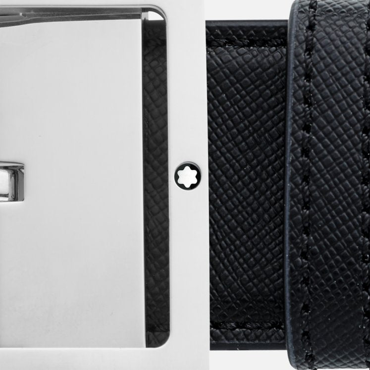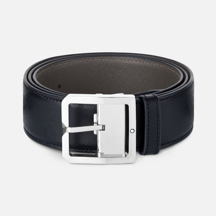 Versatile and sophisticated, this reversible 40mm belt is a trusted companion for any situation. With both of its black and gray sides being crafted in Saffiano-printed leather, it features a squared buckle in stainless steel with an easy to open mechanism.