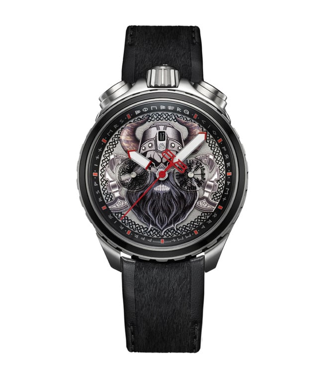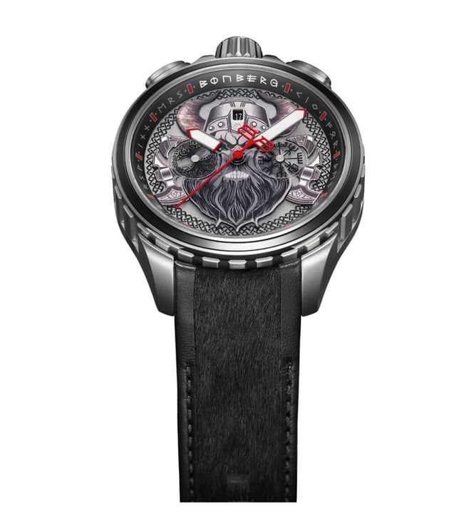 The Viking Redbeard watch dial comes alive with the runic symbols and the Valknut three triangles imagery of Norse mythology. As a tribute to Erik the Red, who also went by the name Redbeard, the Superluminova coating on the Viking's beard makes the legendary warrior-explorer come spectacularly to life as soon as darkness closes in.