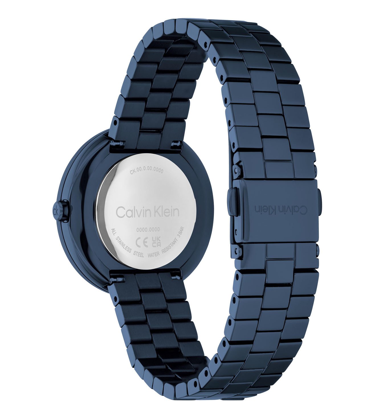 The Calvin Klein TWISTED BEZEL Quartz watch for women features a striking blue round dial accented by a distinctive twisted bezel, encased in durable stainless steel for lasting elegance. Its multicolor band adds a versatile and contemporary touch, perfect for both casual and formal occasions. Powered by precise quartz movement, this timepiece ensures reliable accuracy with minimal maintenance. An excellent choice for those seeking a sophisticated accessory that blends unique design with dependable performance.