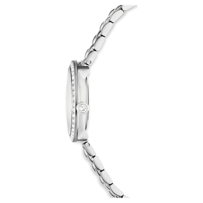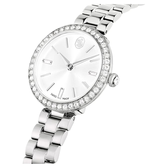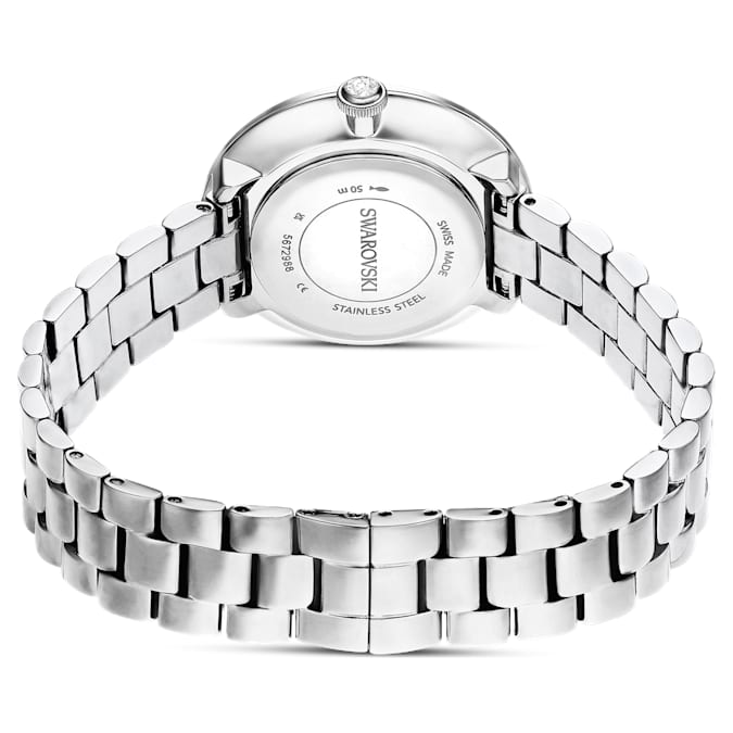 Blending Swarovski radiance with contemporary design, this Certa watch is the perfect fusion of artistry and functionality. The 30mm stainless steel case features a bezel set with a shimmering pavé of 42 crystals, while on the radiant sunray dial, there is an elegant swan logo at 12 o’clock and three index markers crafted from individual baguette-cut crystals. A single crystal is set within the crown, and the three-link metal bracelet provides a comfortable fit around the wrist. This Swiss made watch is water resistant to 50 meters and is a timeless choice to complement your everyday style.