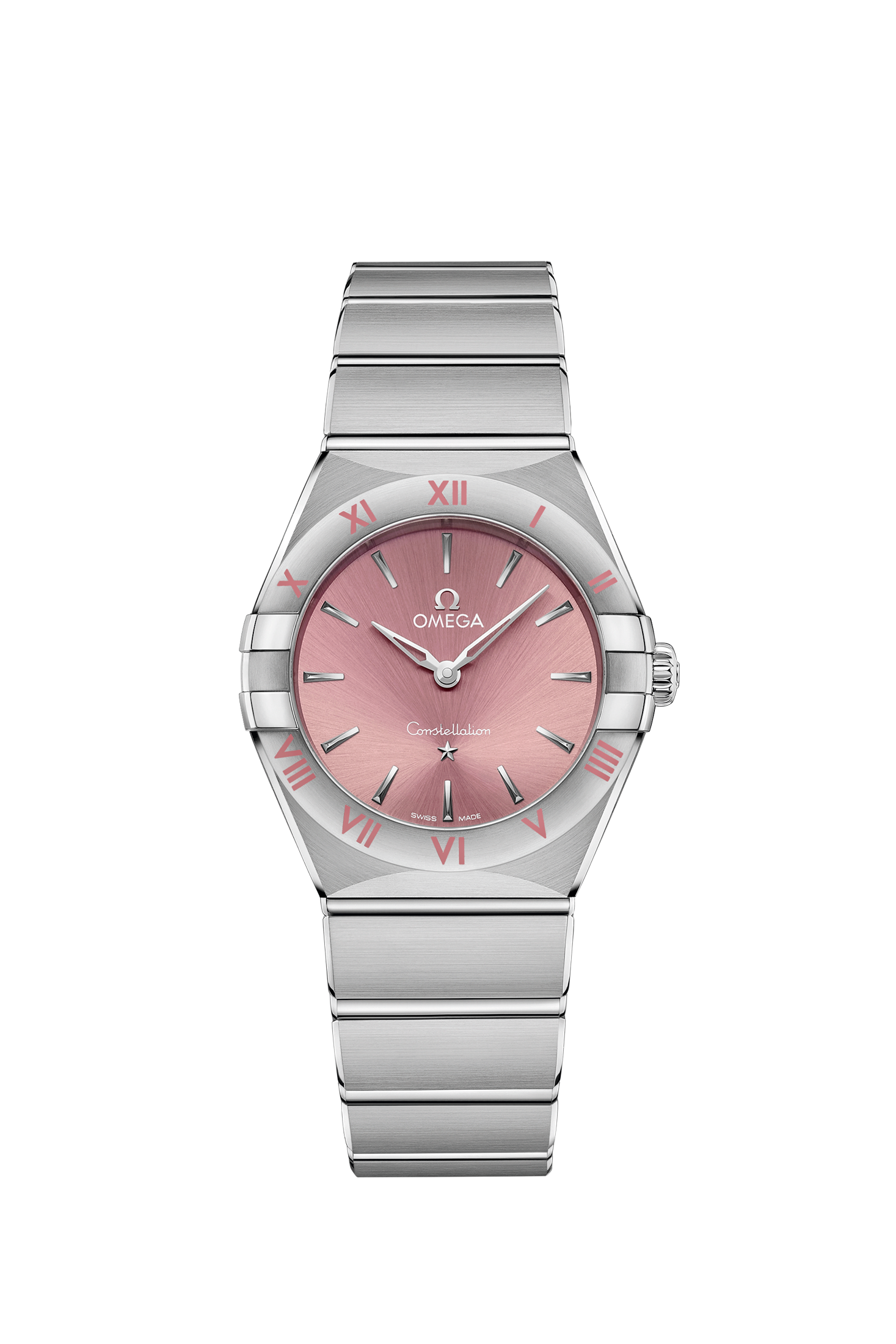 To give the bezel an extra pop of colour, OMEGA has highlighted the engraved Roman numerals in the same pastel shade.
