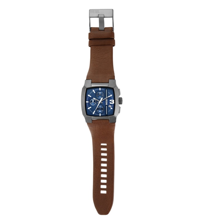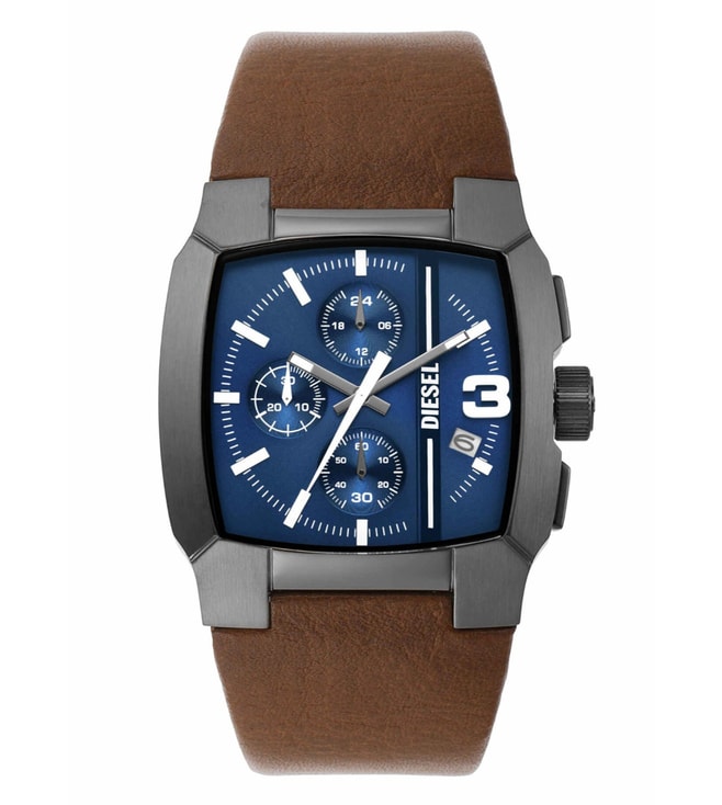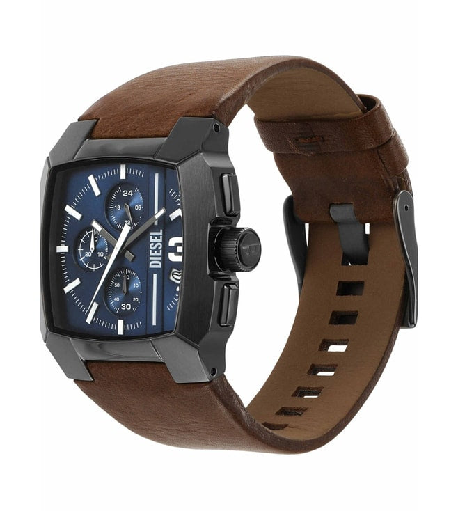 A must-have timepiece for all the watch aficionados, this men's analog watch from Diesel will be a perfect pick. The blue square dial is protected by a mineral glass. It has a crown for time adjustment. The genuine leather strap comes in a brown hue that further elevates the look of the timekeeper. Besides, it is completed with a buckle clasp to ensure a secure fit on the wrist.