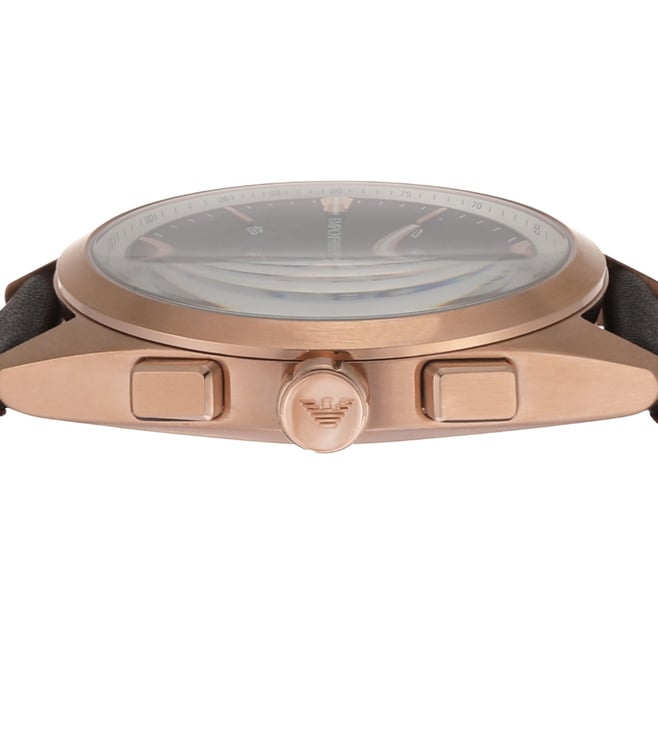 Amaze everyone around you by wearing this men's analog watch from Emporio Armani. The blue round dial is protected by a mineral glass. It has a crown for time adjustment. The genuine leather strap comes in a brown hue that further elevates the look of the timekeeper. Besides, it is completed with a buckle clasp to ensure a secure fit on the wrist.
