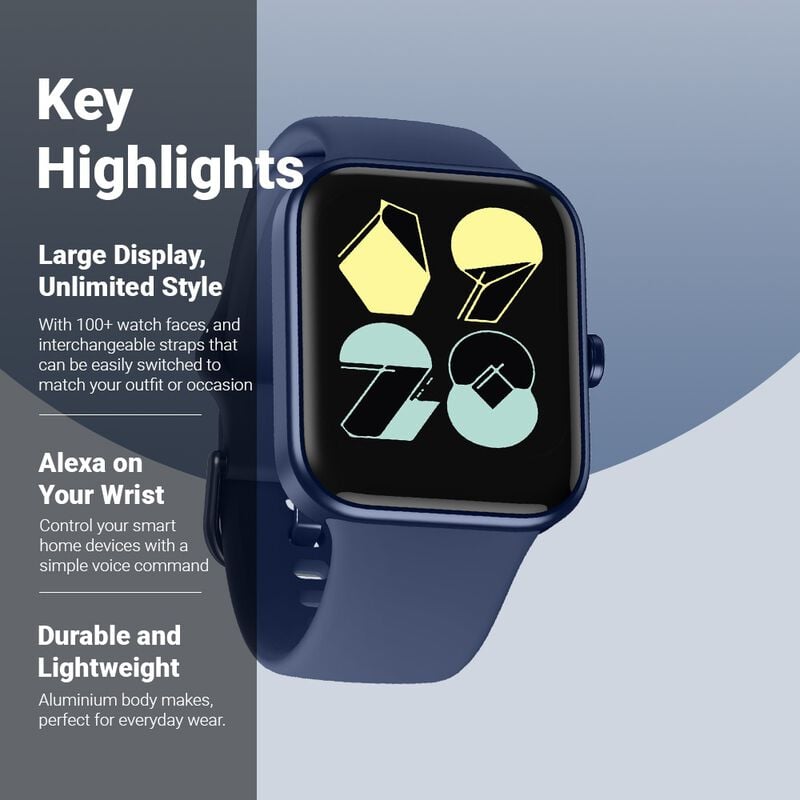 1.69" Large Display Screen, Built in Alexa, 100+Watch Face & 10+Sports Mode. Reflex Vox has got a large range of features such as menstrual tracker, Stress Monitor, SPO2 tracker, Sleep Tracker, 24*7 Heart Rate Monitor & 5ATM Water resistan