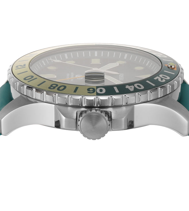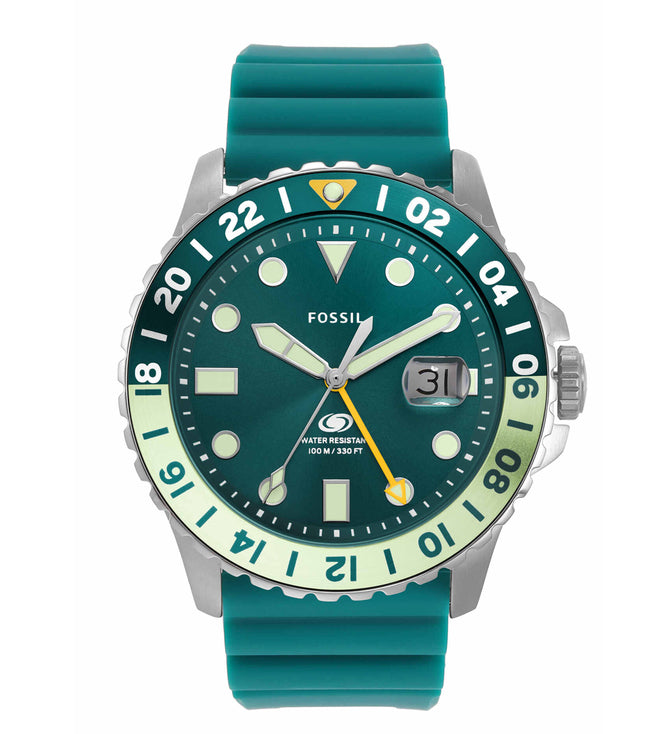Our most innovative dive-style watch is tested to 100 meters of water resistance and tracks multiple time zones. The Fossil Blue GMT also features a rotating 24-hr. bezel, bold oversized crown and lume indices for easy readability. Made for any adventure. *Not ISO-certified.