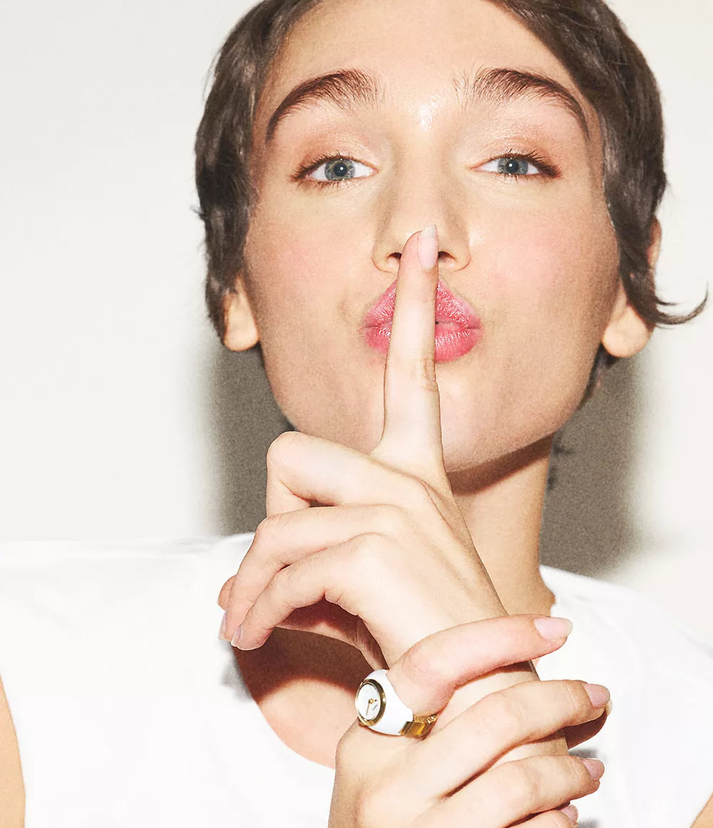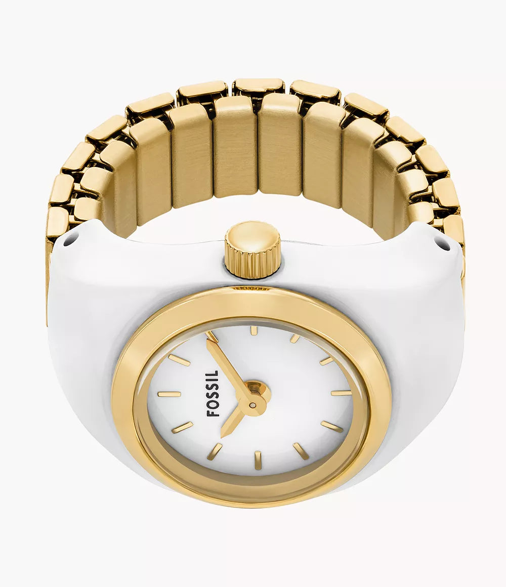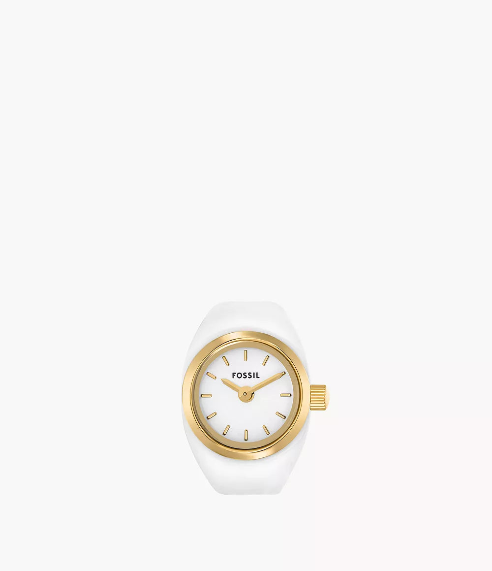 Refined and radiant, this sleek watch ring seamlessly merges fashion and function. The glossy white ceramic coating and gold-tone stainless steel band balance elegance with versatility. Water resistant to 50 meters, it's an elevated accent piece destined for everyday wear.