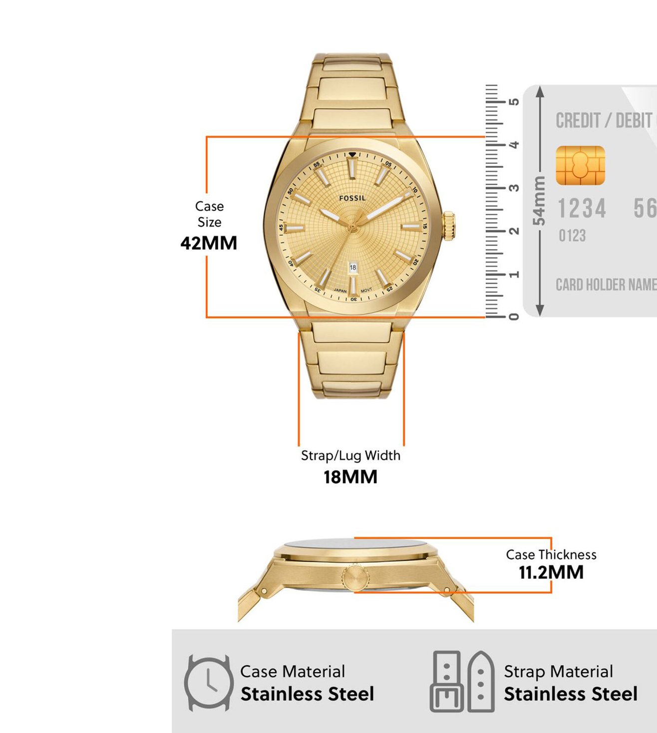 FOSSIL Everett Three-Hand Date Gold-Tone Stainless Steel Watch