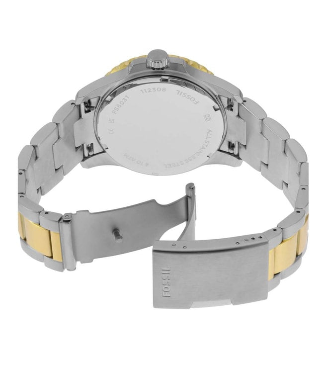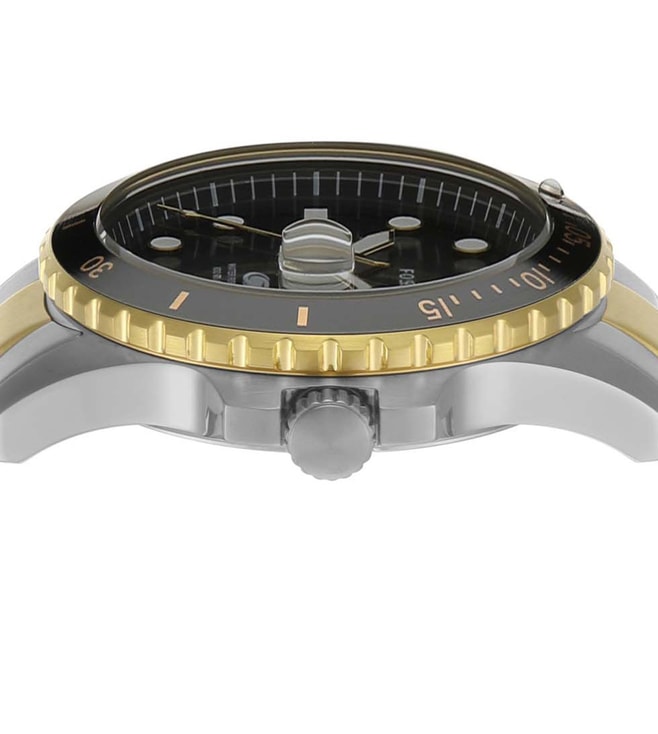 Timeless elegance is crafted in every tick with this watch from the Dive collection by Fossil. Housed in a 42 mm case, the dial is shielded with mineral glass and runs on a quartz movement. It is water resistant up to 100 m and is ideally suitable for men. This dive-style timepiece is expertly crafted with a 3-link bracelet, geometric indices and a uni-directional rotating top ring.