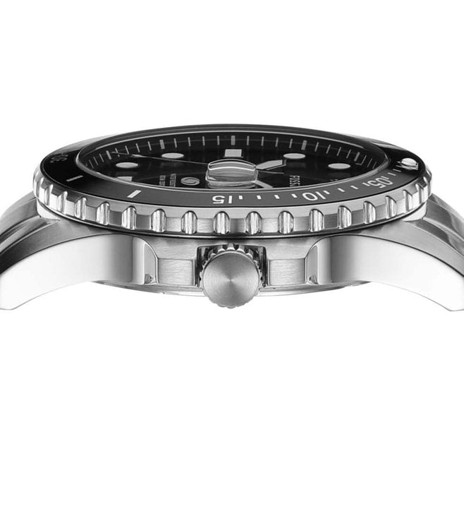 Sophistication meets simplicity in this watch from Fossil. Housed in a 42 mm case, the dial is shielded with mineral glass and runs on a quartz movement. It is water resistant up to 100 m and is ideally suitable for men. The timepiece features a uni-directional bezel. It features a sunray dial and three-hand date functionality.