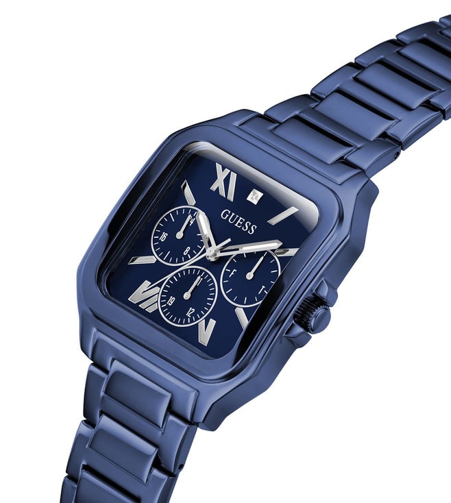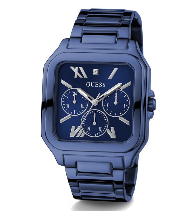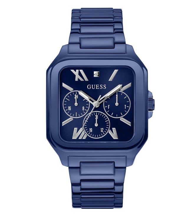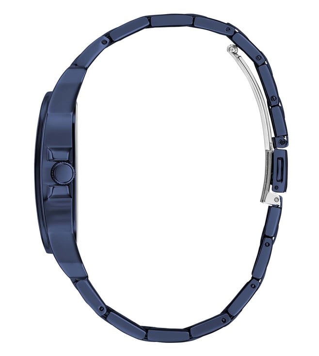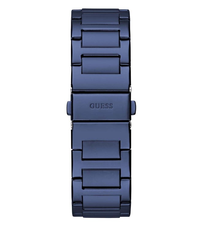 Give your wrist the perfect blend of style and comfort by wearing this watch from Guess. Housed in a 42 mm case, the dial is shielded with mineral glass and runs on a quartz movement. It is water resistant up to 10 m and is finished with a push button clasp to guarantee a snug fit on the wrist. It blends durability with a modern design. The dial adds a touch of sophistication and uniqueness, making it versatile enough for various occasions. This watch is an excellent choice for those who appreciate a sleek and fashionable accessory that complements their style with a pop of colour.
