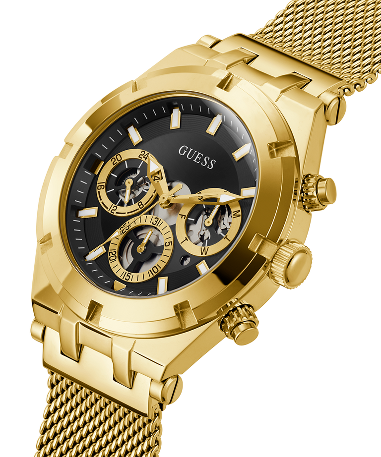 Style meets functionality with this multi-function chrono-look style with skeleton details to the sub-eyes that showcase the movement of the watch.