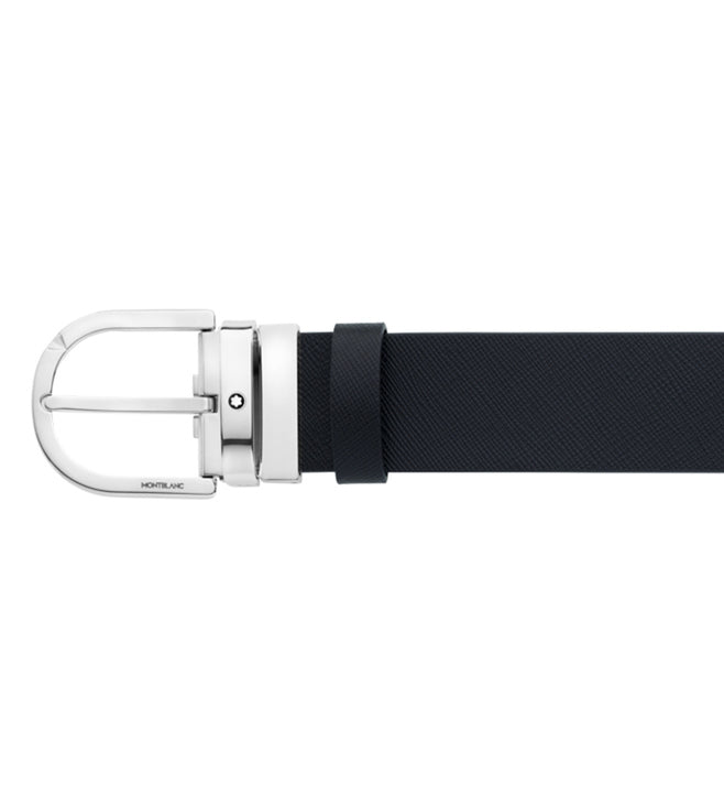 Versatile and bold, this reversible 35mm Saffiano-printed leather belt is the right choice for those who are not afraid to leave a mark. Its horseshoe pin buckle features an easy-to-open mechanism and seamlessly fits both black and burgundy sides of the belt.