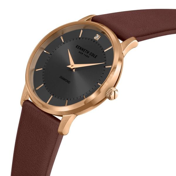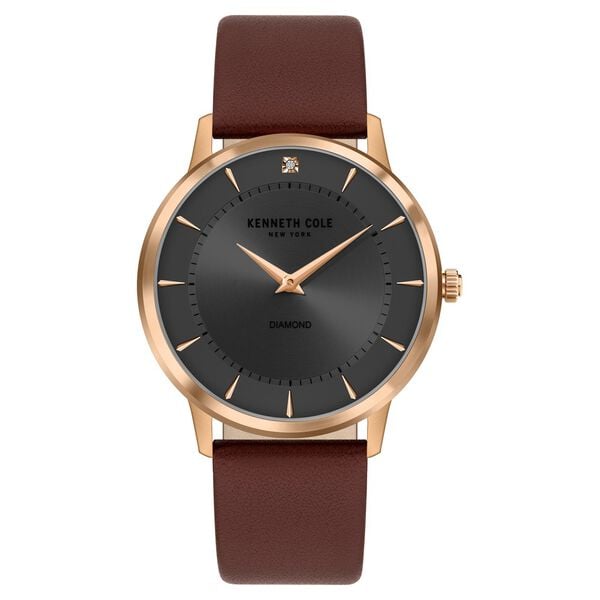 Kenneth Cole Quartz Analog Grey Dial Leather Strap Watch for Men
