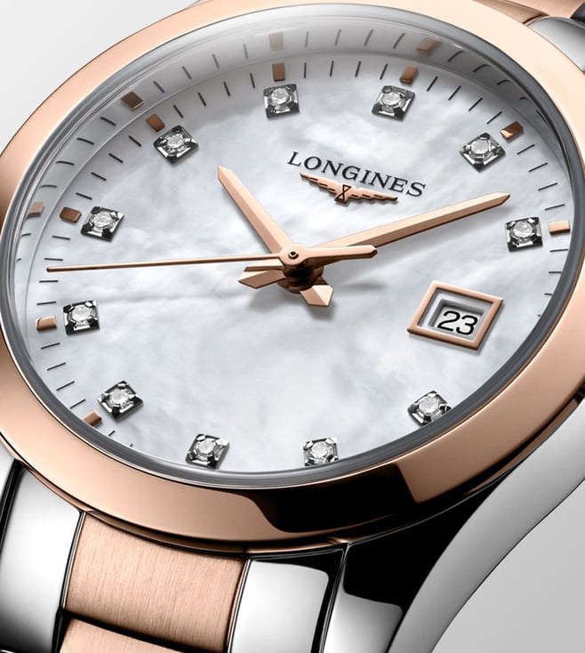 The Conquest Classic by Longines skillfully combines modernity with the refinement that defines the brand. Elegant and sleek, the latest creation in this line are both resolutely feminine and boldly contemporary. Designed to set the pace of the modern woman’s day, they will delight those who masterfully weave together the many facets of their lives.