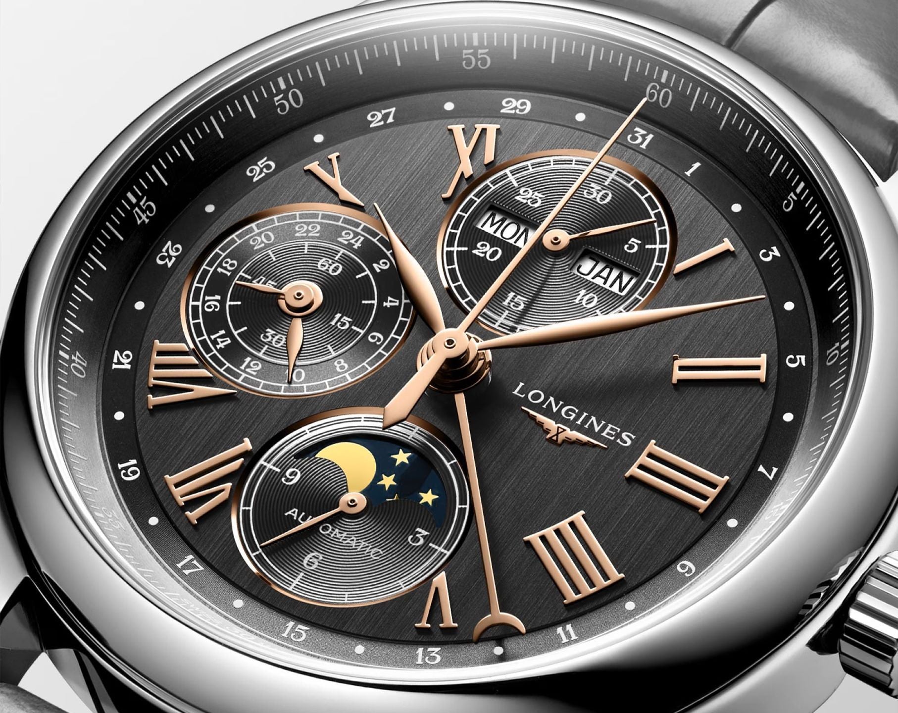 Chronograph, Day-Date, Moon Phase, Small Seconds, Month, 24 Hour Indicator