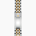 First center links in steel or solid yellow gold. Remaining center links in steel or steel covered by a 0.2mm yellow gold cap. "T-fit" folding clasp with safety catch. The logo on the catch is made of solid yellow gold