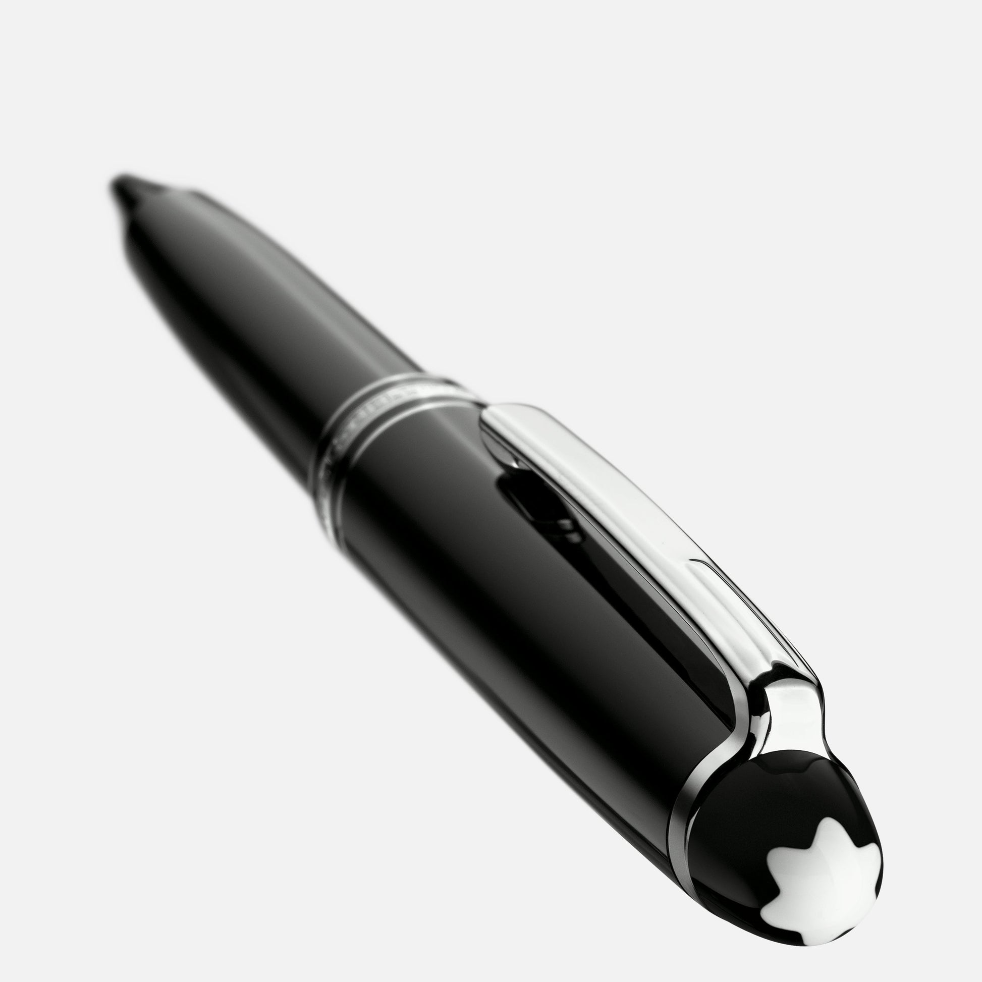 The luxury ballpoint pen Meisterstück Classique evolves into a distinctive design icon. Cap and barrel are crafted in black precious resin inlaid with a white Montblanc emblem. Three platinum-coated rings with embossed Montblanc lettering and a platinum-coated clip with an individual serial number emphasize the timeless design of this luxurious ballpoint pen. To express your personality, Montblanc offers a gratuitous engraving of names or initials by the right side of or on the elegant platinum-coated clip. At a time when individuality is becoming increasingly rare, our Mystery Black, Pacific Blue, Nightfire Red, Fortune Green, Amethyst Purple and Barbados Blue ballpoint pen refills let you show your individual writing style