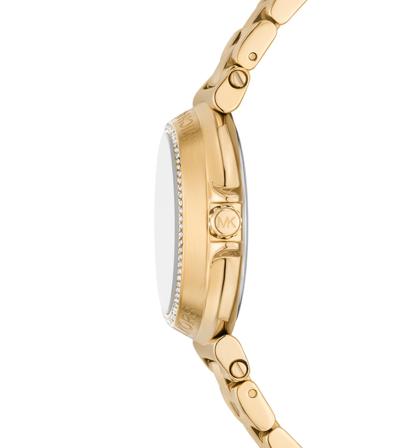 Michael Kors' 33mm Maren watch features a gold sunray dial, three-hand movement and gold-tone stainless steel bracelet.if you are looking for a refined look. Known for its distinctive pattern, this timepiece stands out. With a stunning design and charming looks, this is an exquisite wristwatch made for Every one.