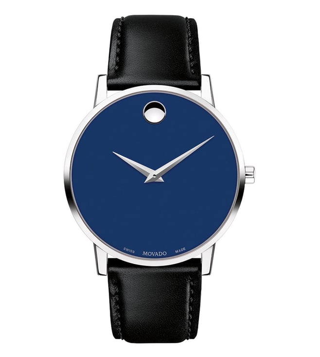 Men's Museum Classic watch, 40 mm stainless steel case, blue Museum dial with silver-toned dot and hands, black calfskin strap with stainless steel buckle.
