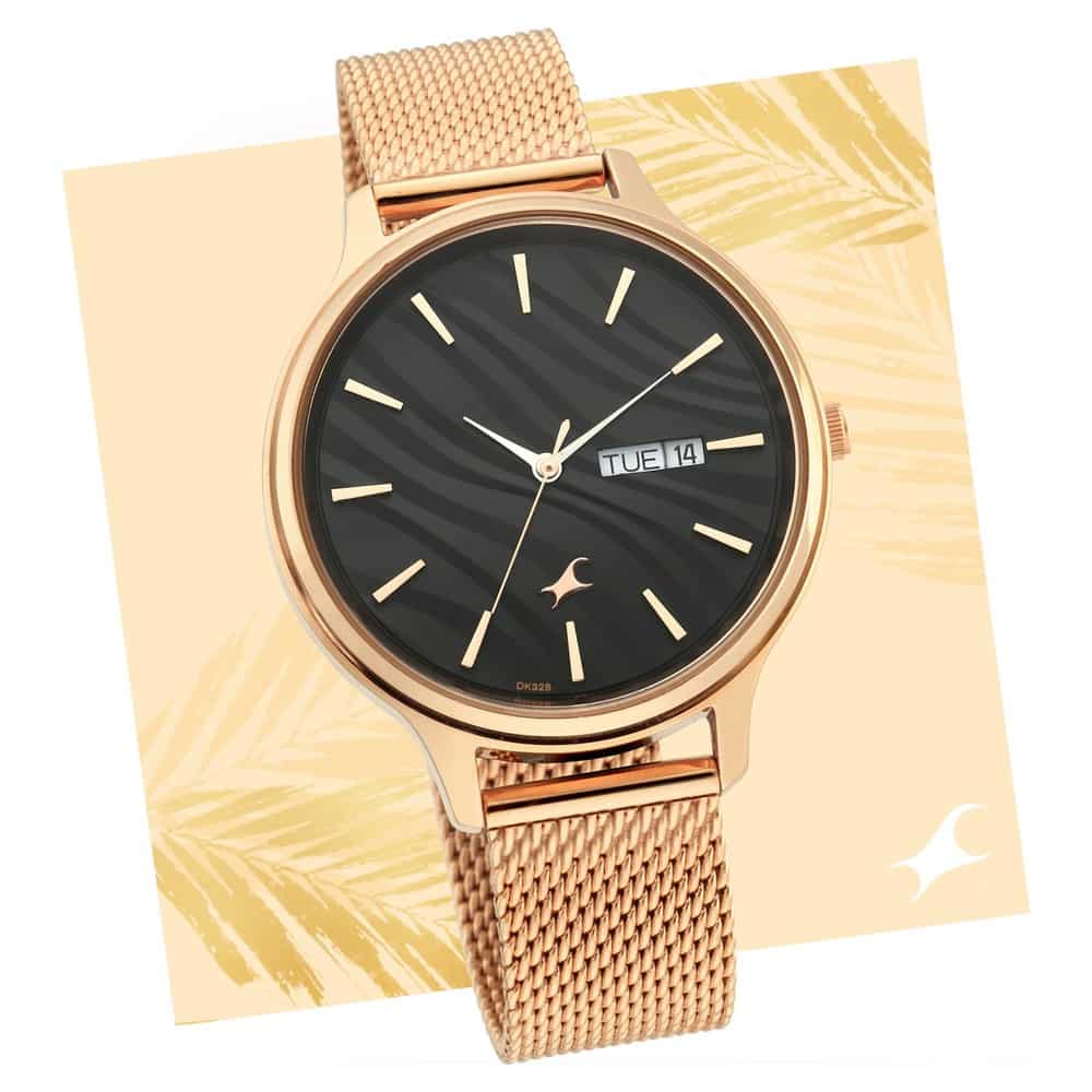 NR6207WM01 FASTRACK - RUFFLES BLACK DIAL METAL MESH STRAP WATCH