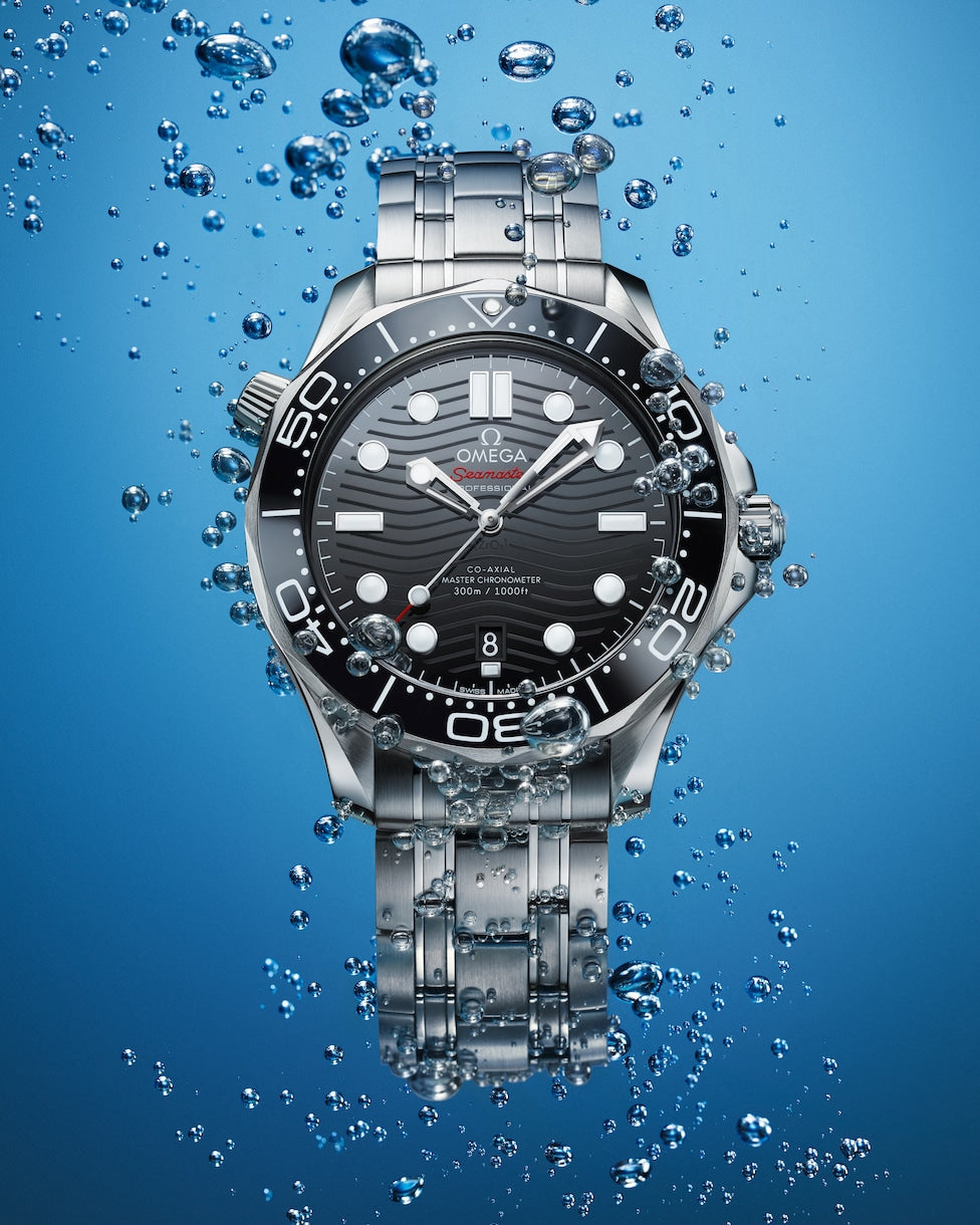 Since 1993, the Seamaster Professional Diver 300M has enjoyed a legendary following. Today’s modern collection has embraced that famous ocean heritage and updated it with OMEGA’s best innovation and design.This 42 mm model is crafted from stainless steel and includes a black ceramic bezel with a white enamel diving scale. The dial is also polished black ceramic and features laser-engraved waves and a date window at 6 o’clock. The skeleton hands and raised indexes are rhodium-plated and are filled with white Super-LumiNova,while the helium escape valve has been given a conical design.The watch is presented on a stainless steel bracelet and is driven by the OMEGA Master Chronometer Calibre 8800, which can be seen through the sapphire-crystal on the wave-edged caseback.