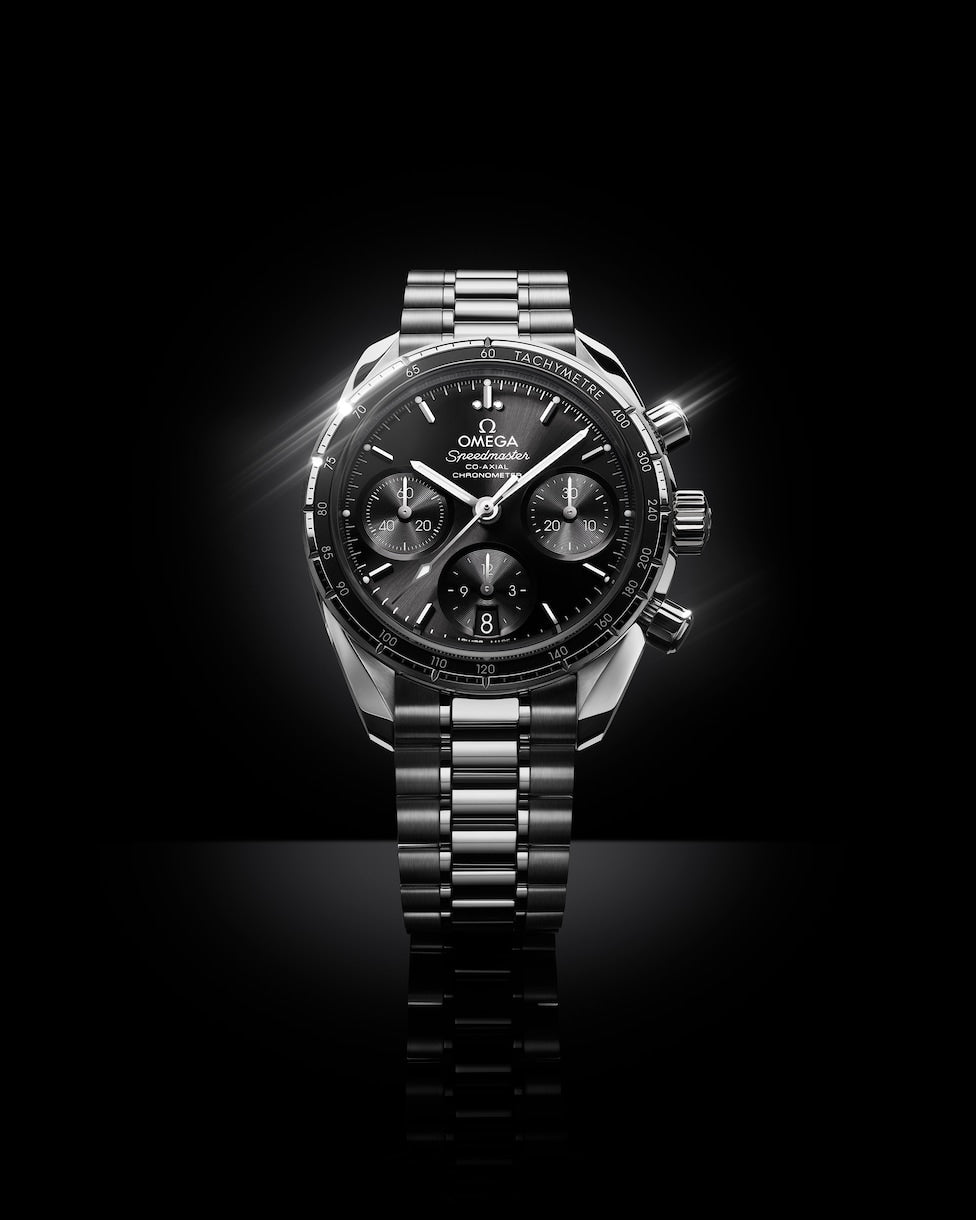 The Speedmaster 38 mm collection has been crafted with simplicity, size and colour in mind, yet still retains the look and heritage of OMEGA’s most famous chronograph.