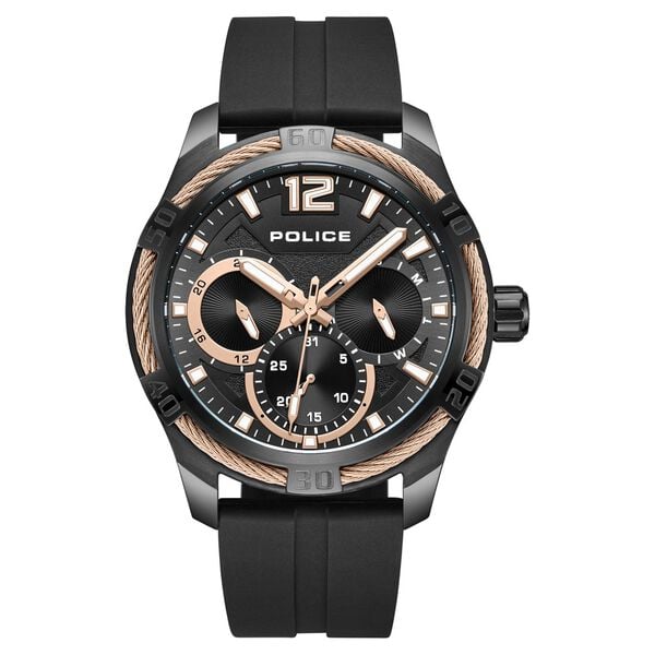 Police Multifunction Black Dial Black Silicone Strap Watch For Men