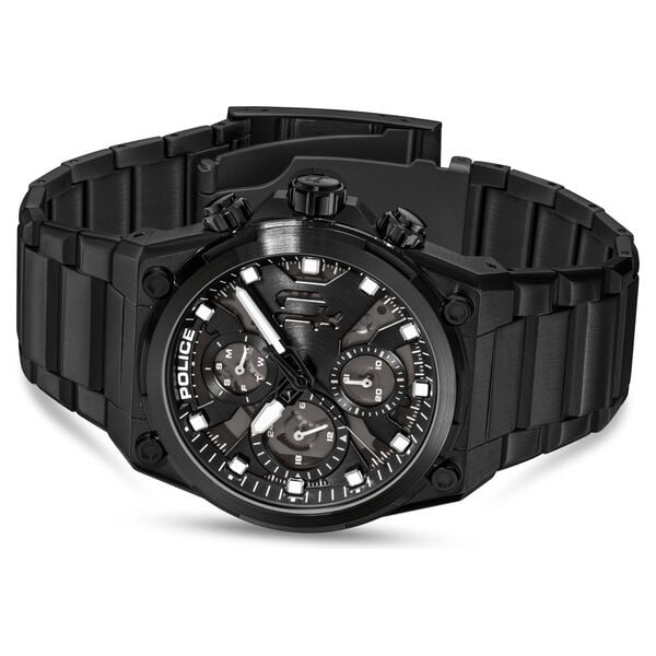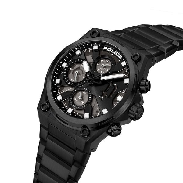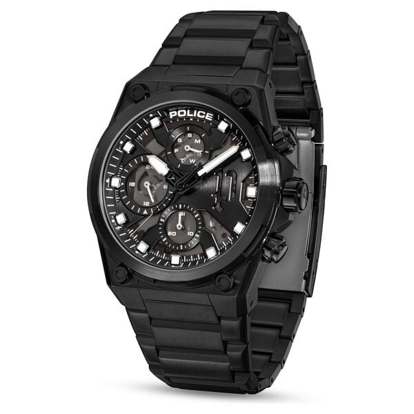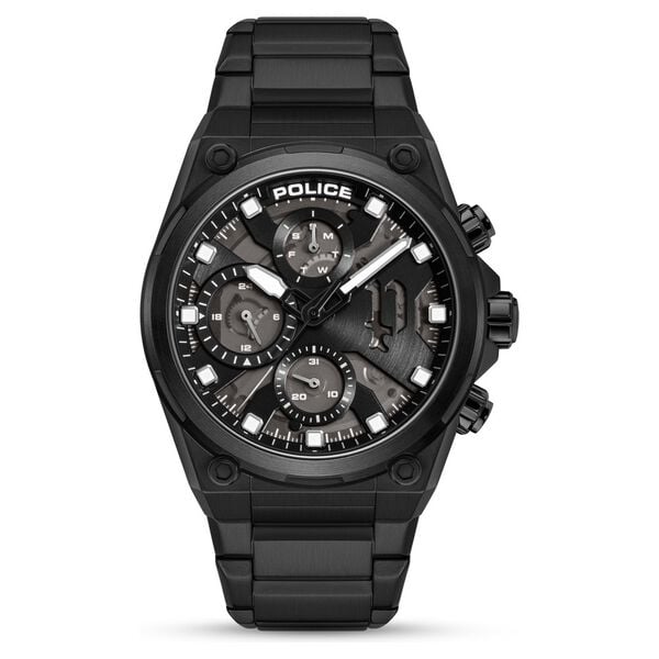 Police Multifunction Black Dial Black Stainless Steel Strap Watch For Men