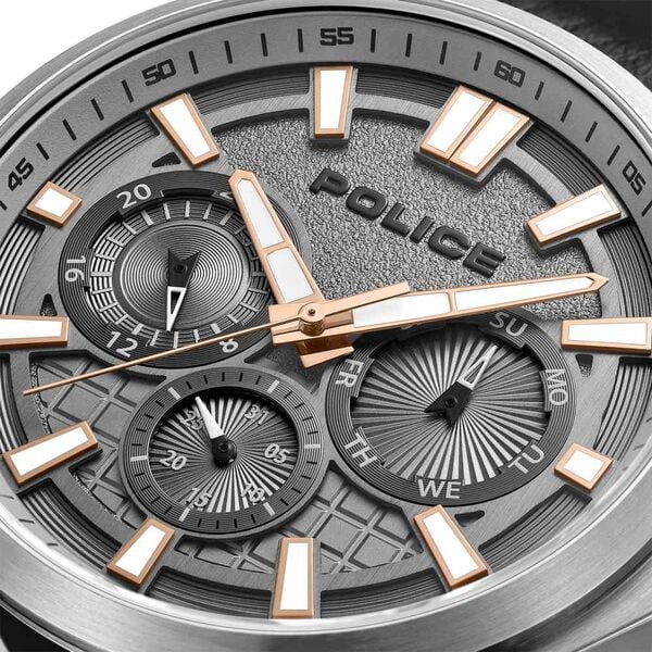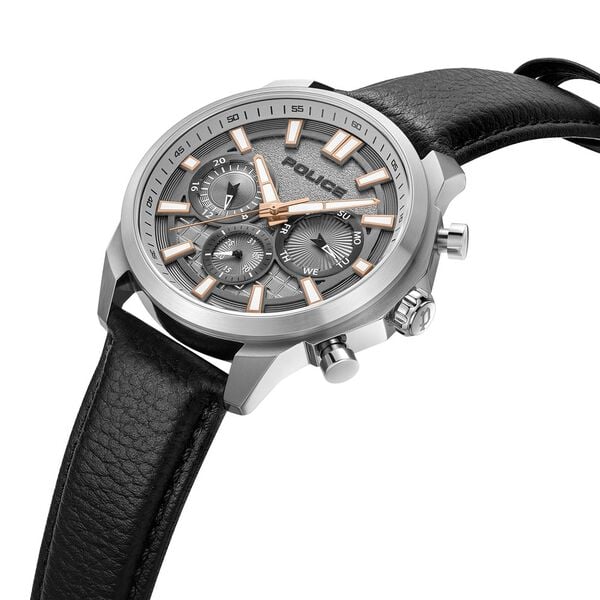 Police Quartz Multifunction Grey Dial Black Leather Strap Watch For Men